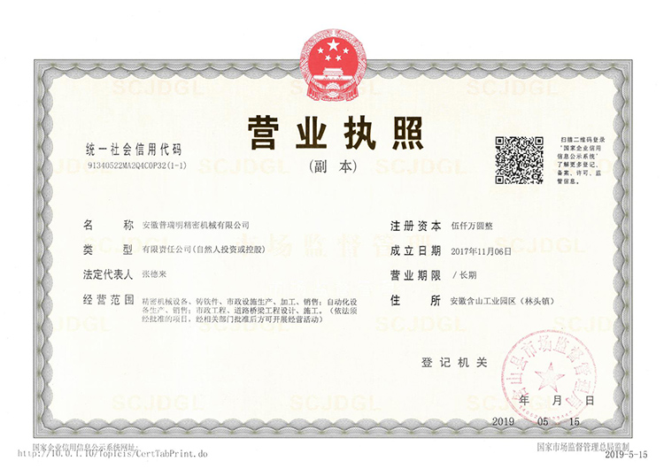 - 安徽普瑞明精密機(jī)械有限公司位于安徽含山縣林頭鎮(zhèn),緊靠天天高速、北沿江高速、京福高鐵和商合杭高鐵,交通便利。公司占地面積200畝,通過(guò)了ISO9001質(zhì)量管理、 ISO14001環(huán)境管理、ISO45001職業(yè)健康管理、GB/T29490知識(shí)產(chǎn)權(quán)管理、ISO50001能源管理體系、GB/T27922商品售后服務(wù)評(píng)價(jià)體系、GB/T23001(T/AIITRE 10003)兩化融合管理體系七大體系認(rèn)證,是...